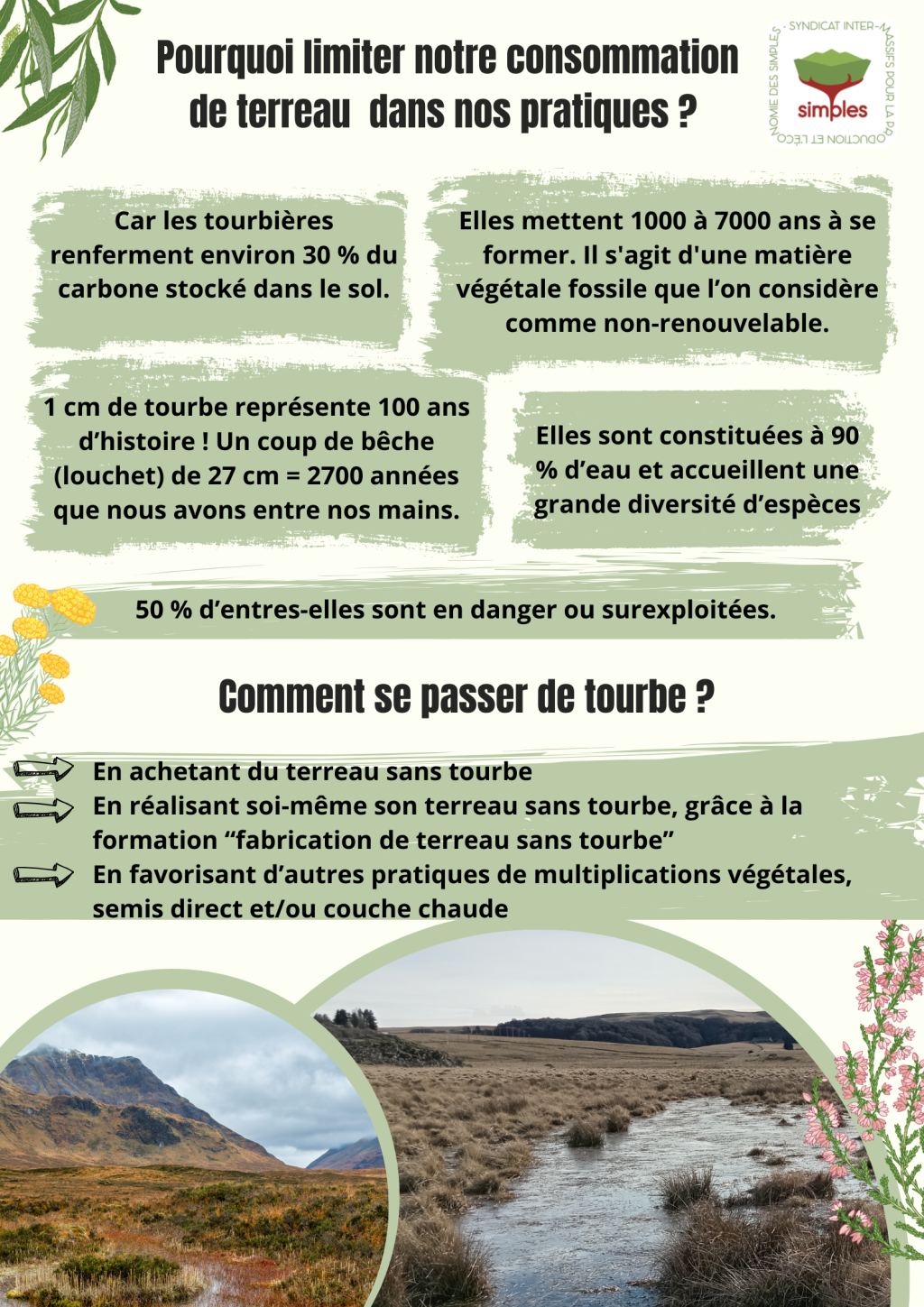 La plupart des terreaux contiennent de la tourbe, une ressource issue des tourbières, des écosystèmes aussi précieux que fragiles. Ces milieux naturels stockent à eux seuls près de 30 % du carbone des sols et mettent des millénaires à se former, ce qui fait de la tourbe une matière considérée comme non renouvelable. Face à la dégradation croissante des tourbières, il devient essentiel de faire évoluer nos pratiques. Des alternatives sans tourbe existent aujourd’hui et permettent de continuer à produire tout en préservant ces écosystèmes indispensables.